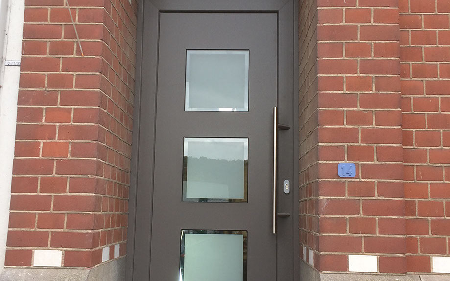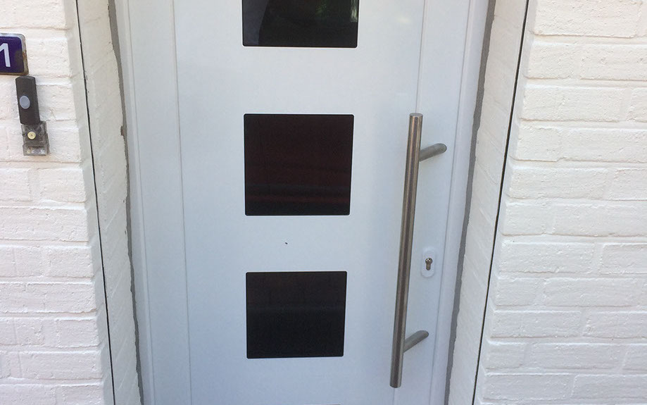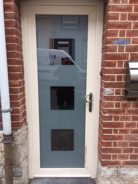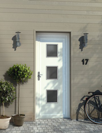 Porte PVC ALUPLAST vitrage feuilleté 3 carrés.